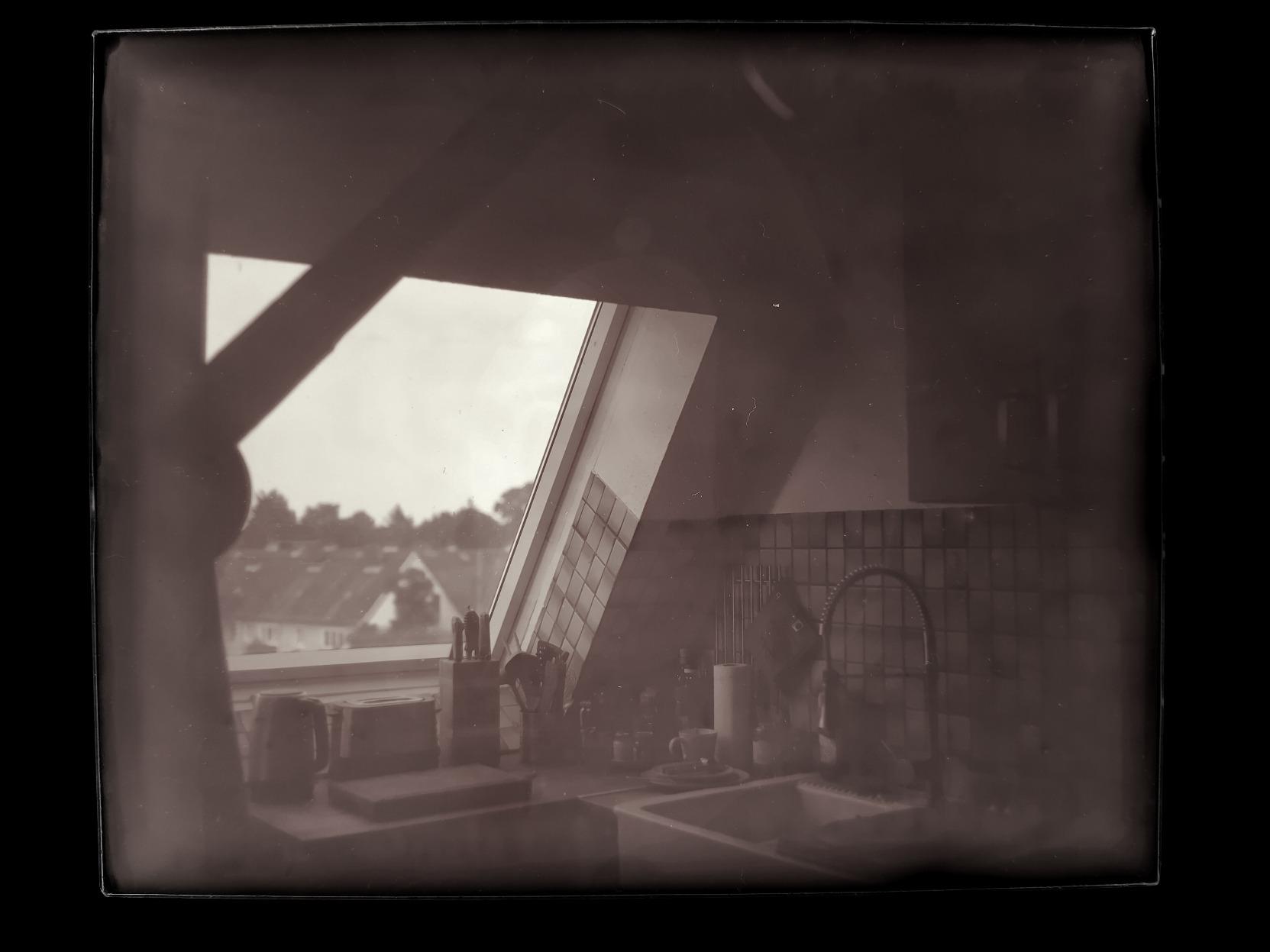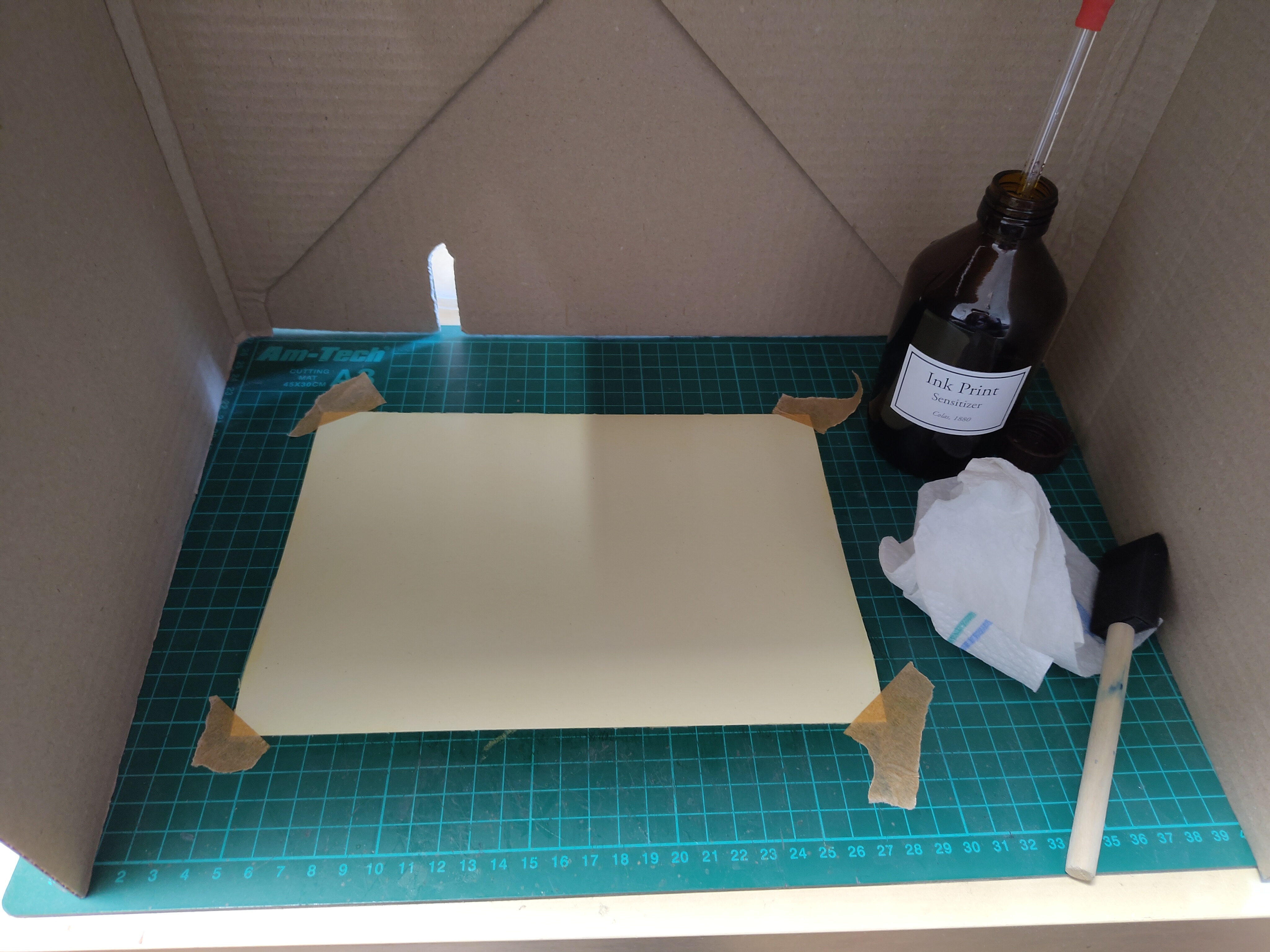 To sensitize the paper I applied a single coat of the sensitizer using a foam brush and let it dry in a dark place. When doing this it’s important to make sure the coating is very even since the density of the final print depends heavily on the amount of sensitizer in each location, much more so than with a negative process like cyanotype5.