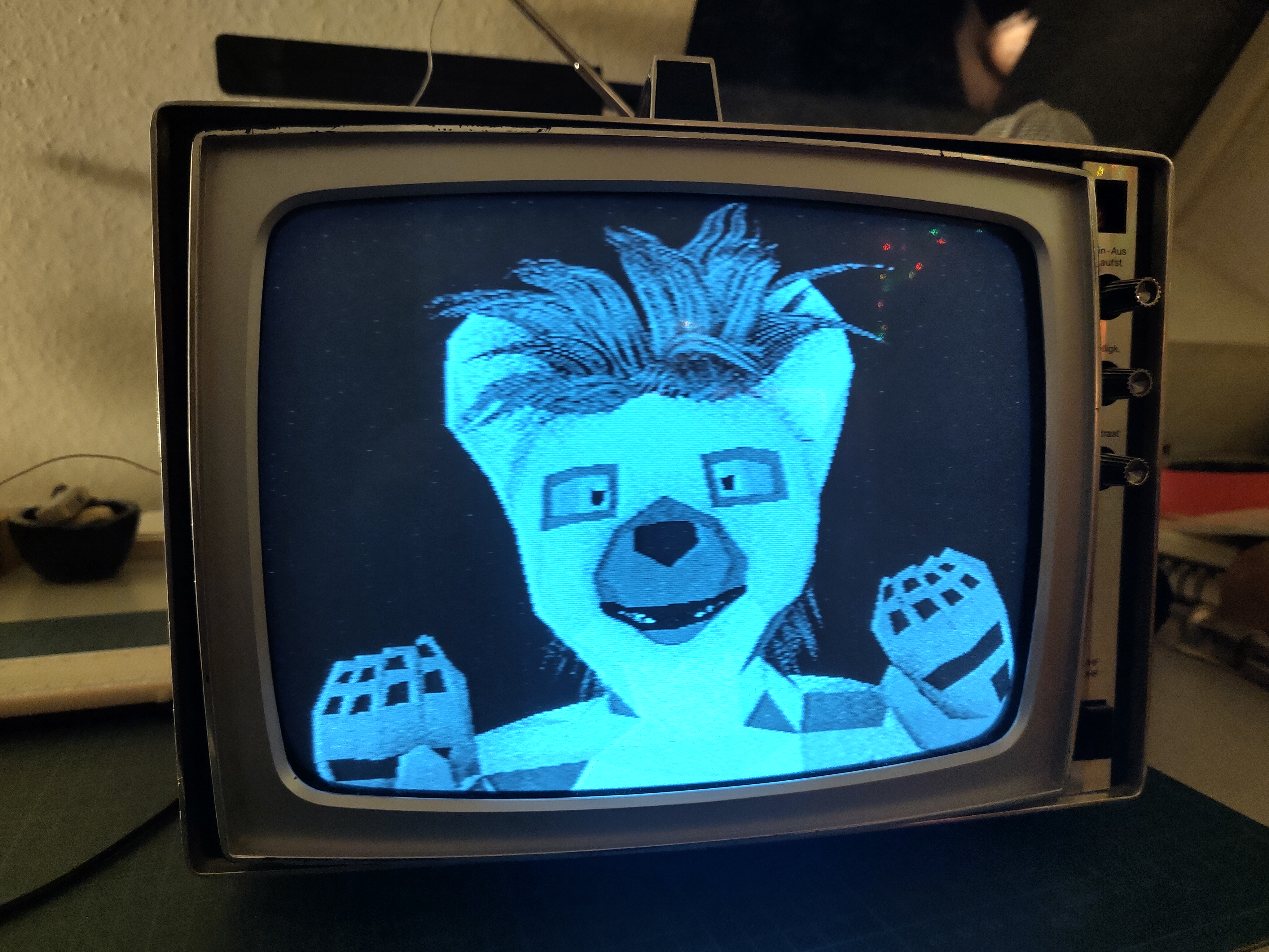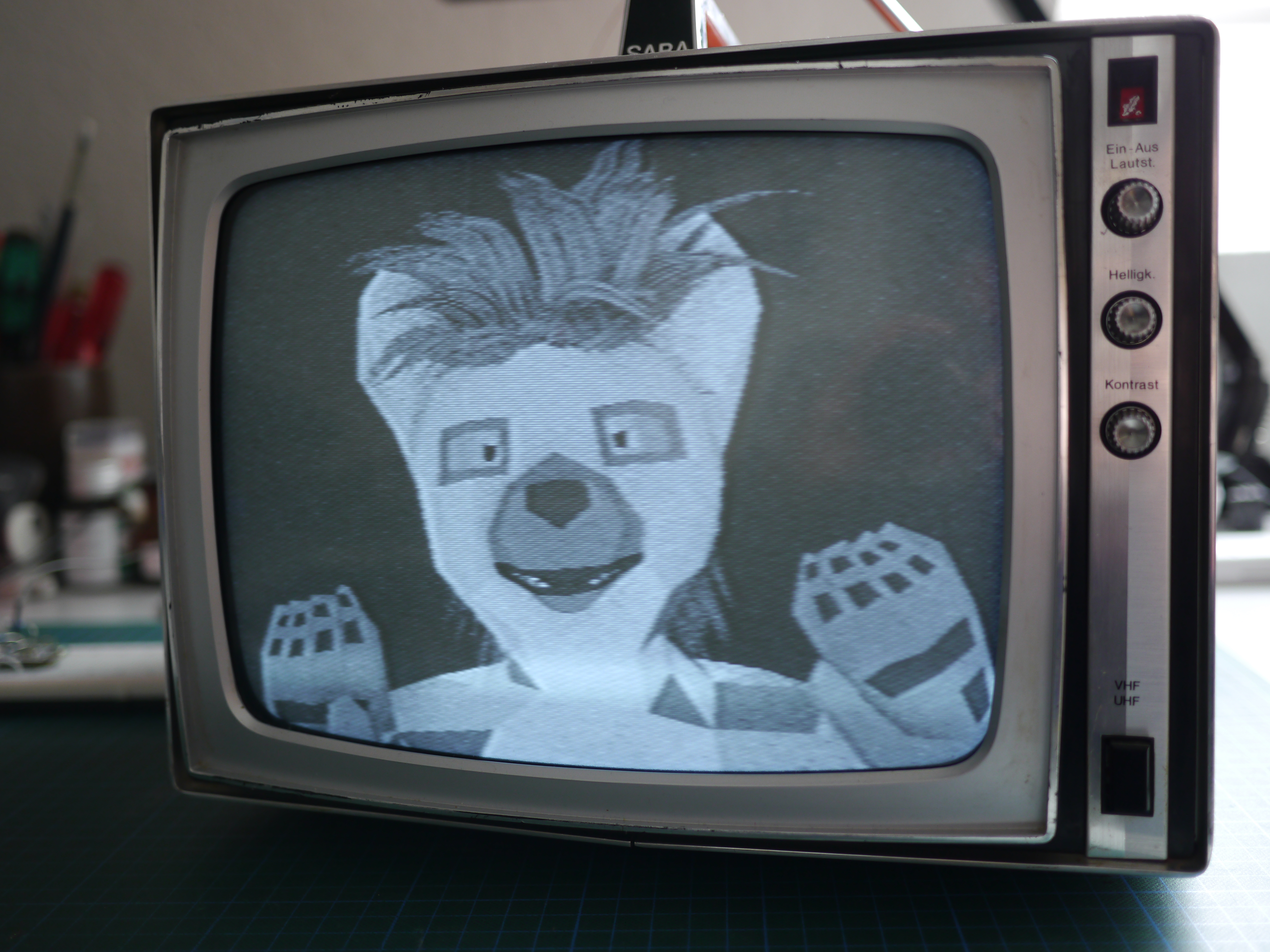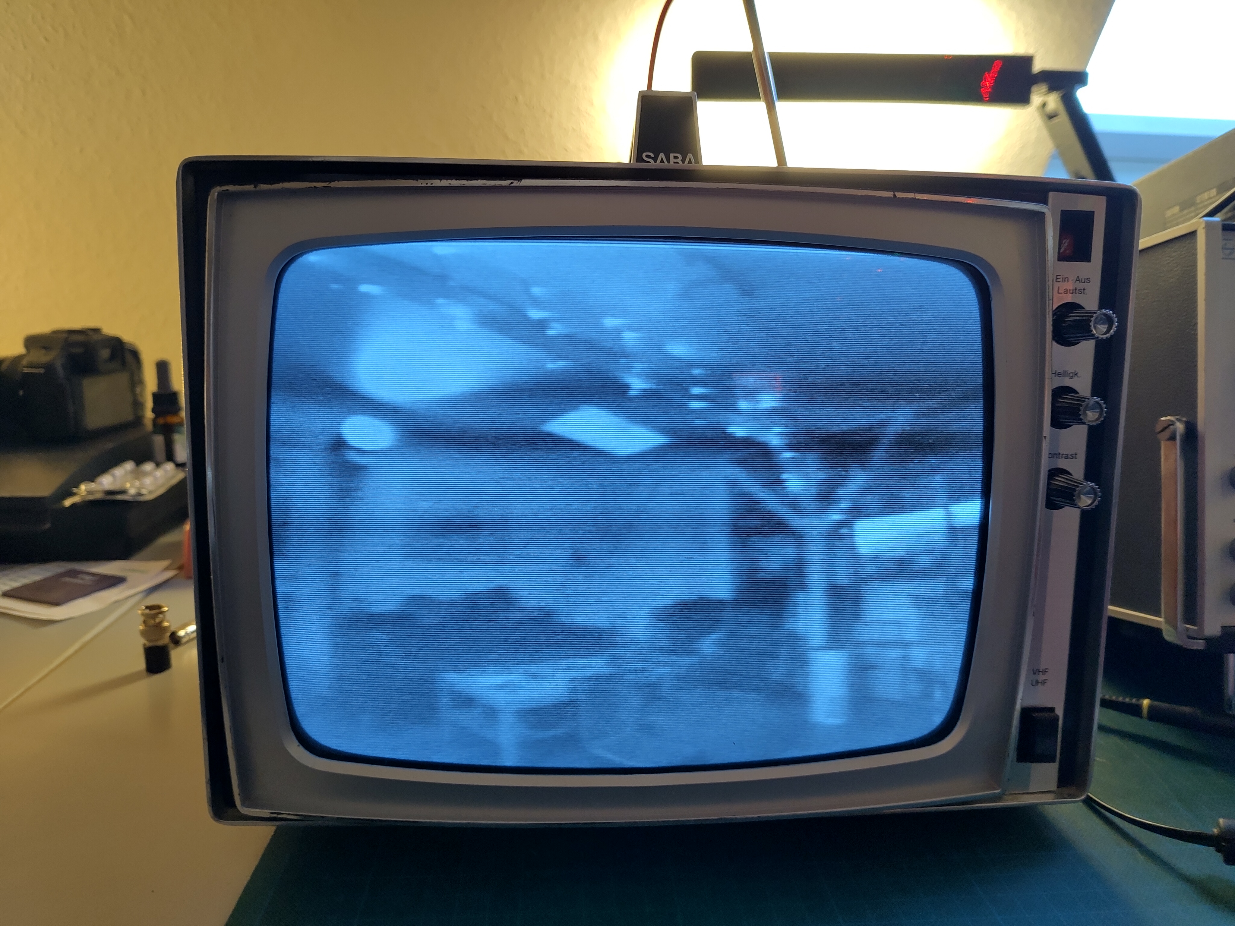 Turns out that one of the reasons this TV was so cheap was because it doesn’t have any video input besides an antenna. And it’s black and white. Both of which are deeply disappointing to gamers. And since analogue video broadcasts around here have stopped like a decade ago I couldn’t even enjoy our high quality domestic TV programming, let alone connect any of my weird cameras.