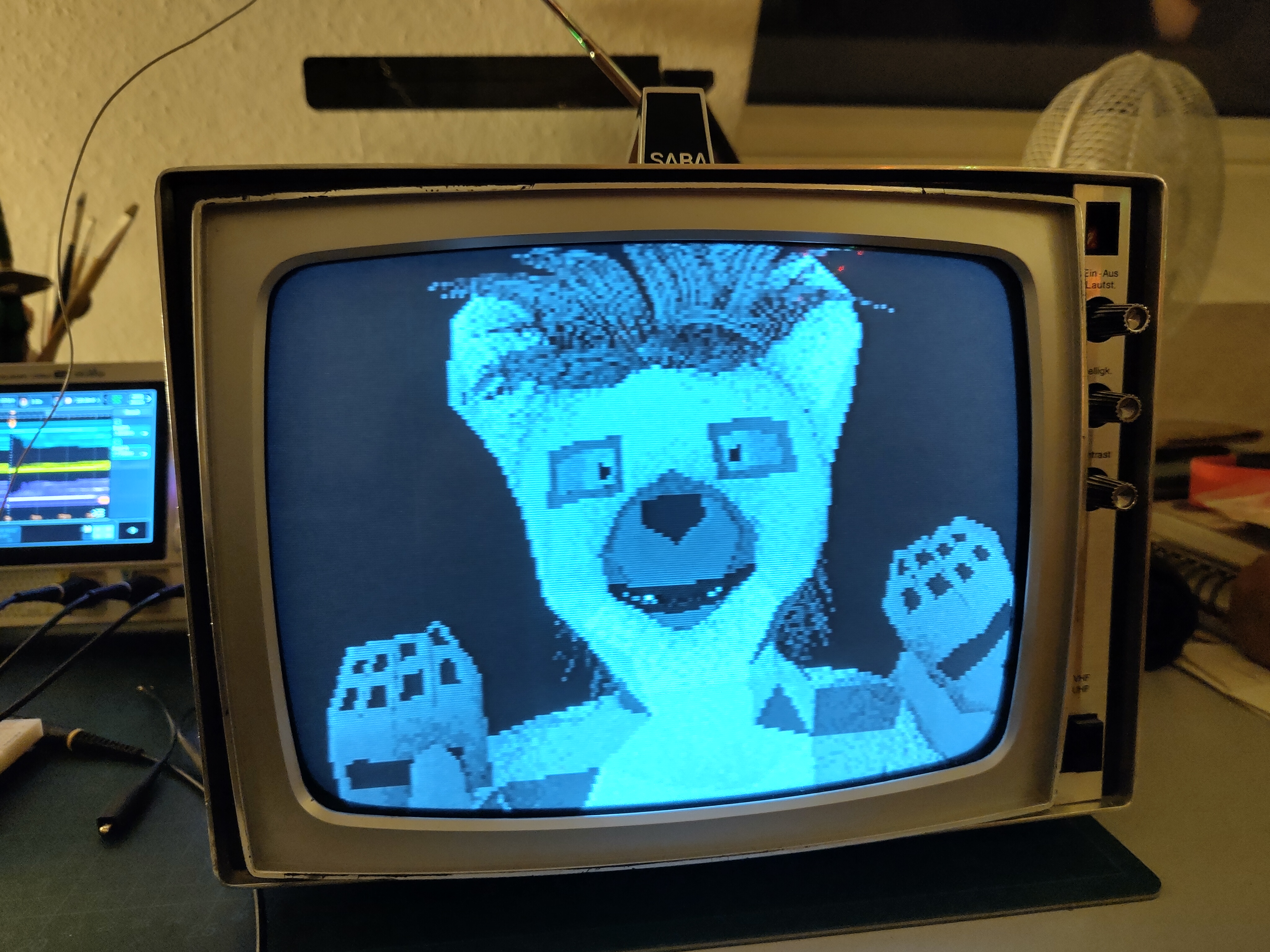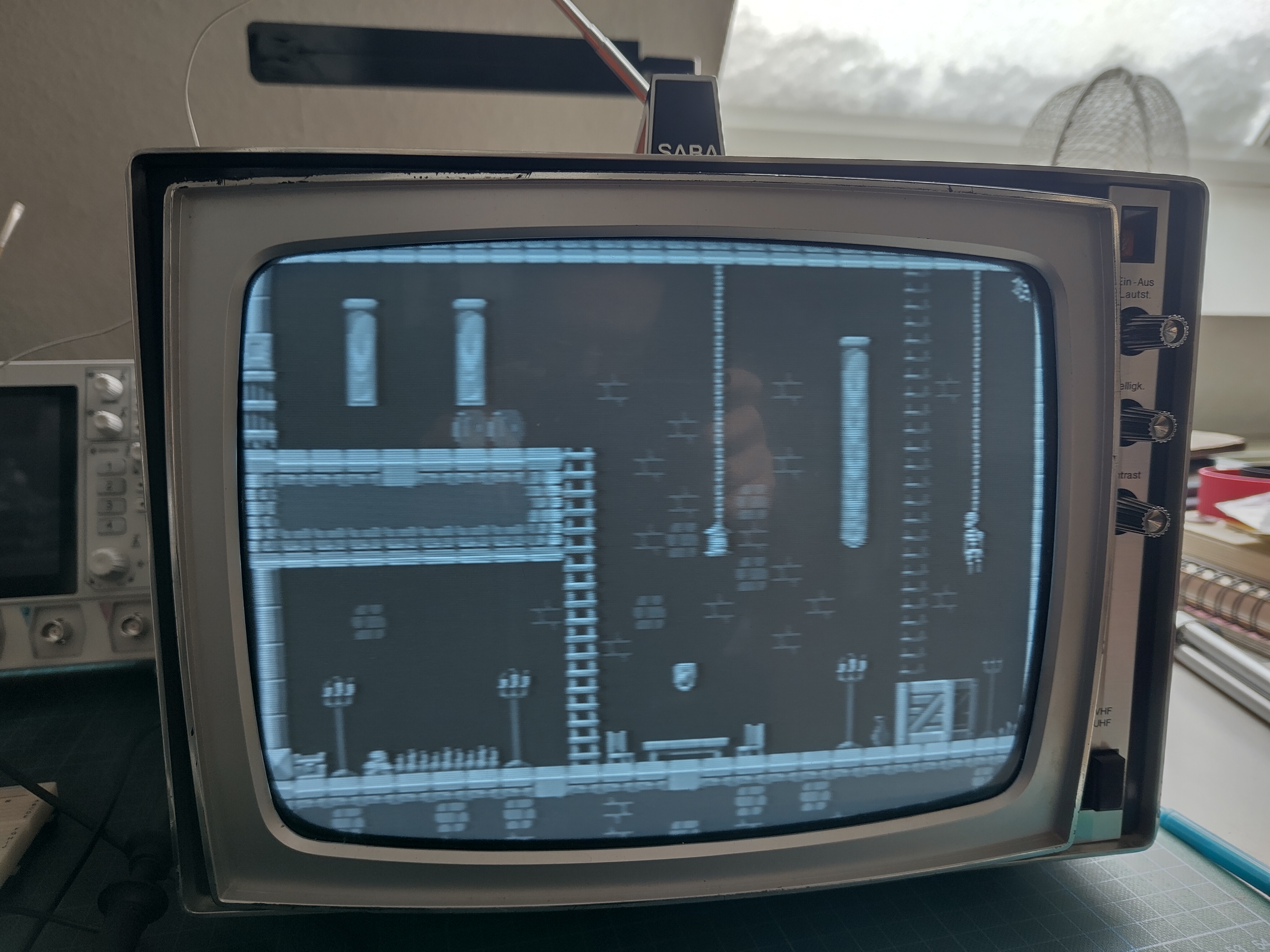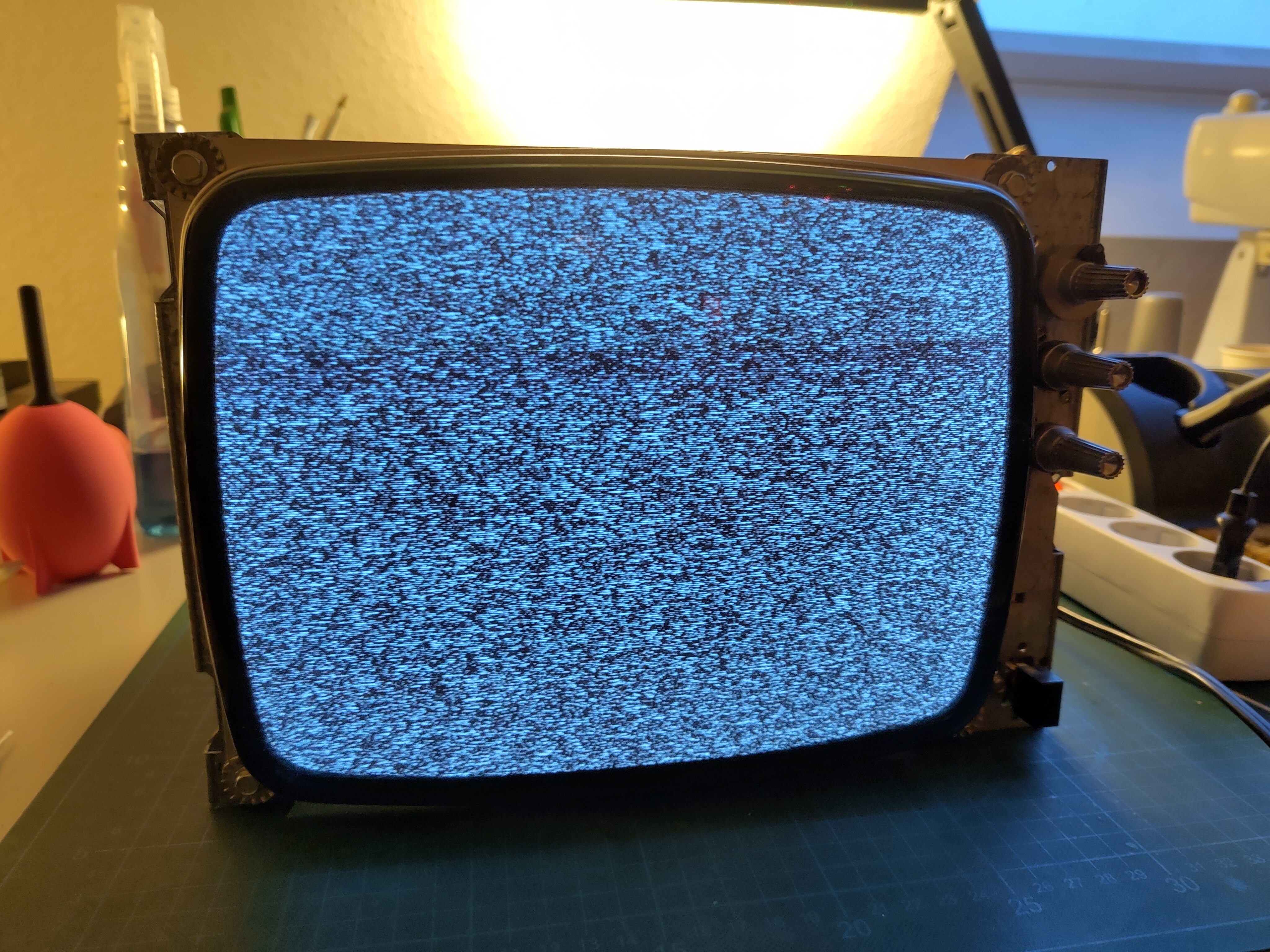 Turns out that one of the reasons this TV was so cheap was because it doesn’t have any video input besides an antenna. And it’s black and white. Both of which are deeply disappointing to gamers. And since analogue video broadcasts around here have stopped like a decade ago I couldn’t even enjoy our high quality domestic TV programming, let alone connect any of my weird cameras.