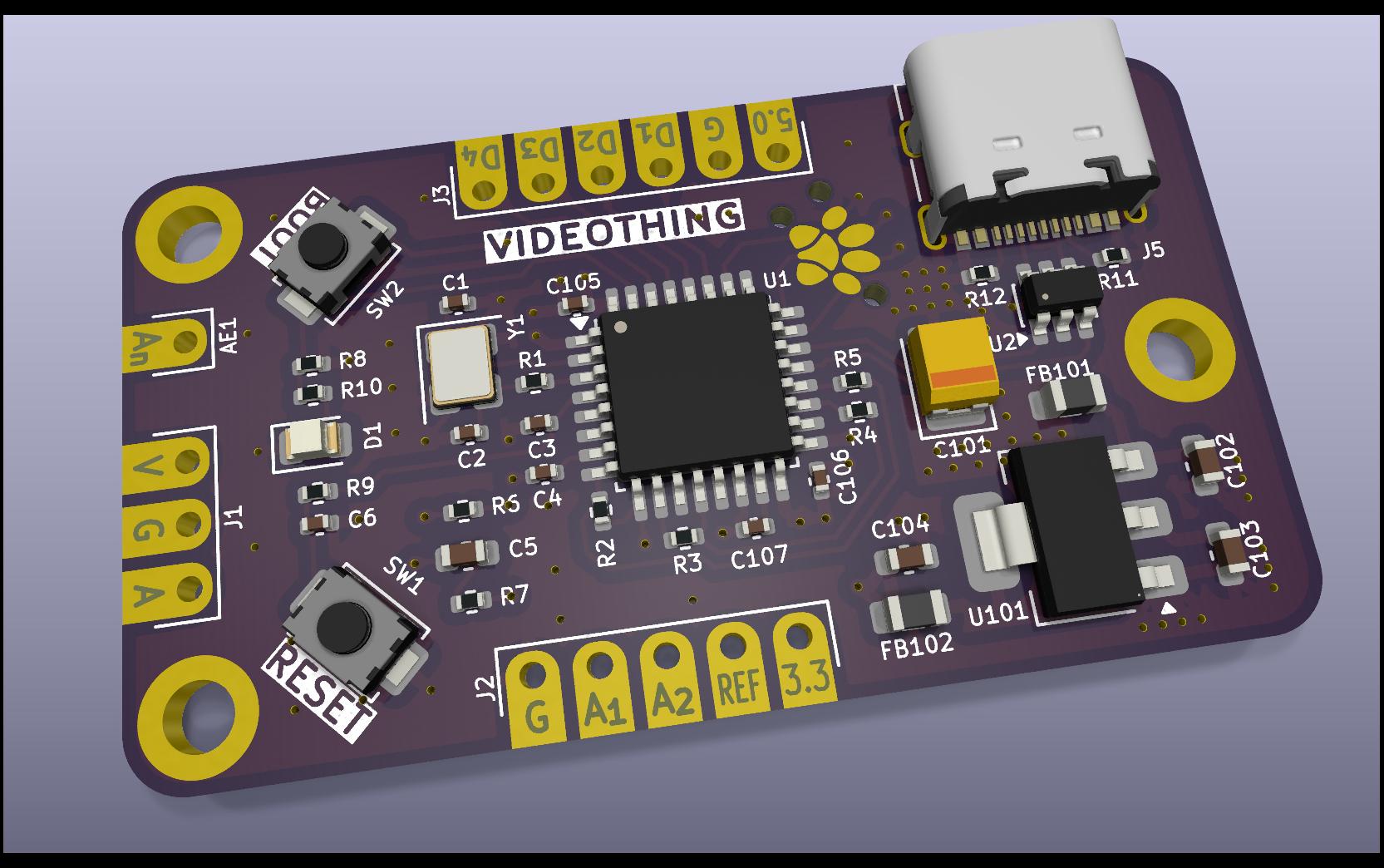 I feel like I got incredibly lucky here because not only was I able to use every pin on the small 32 pin package but I was even able to keep all the digital stuff tucked safely away from the analogue portion doing the external signal mixing. You could even do it all on one layer! All the video generation still happens inside the chip, the external components are just support for making the chip run and getting the signals in and out.
